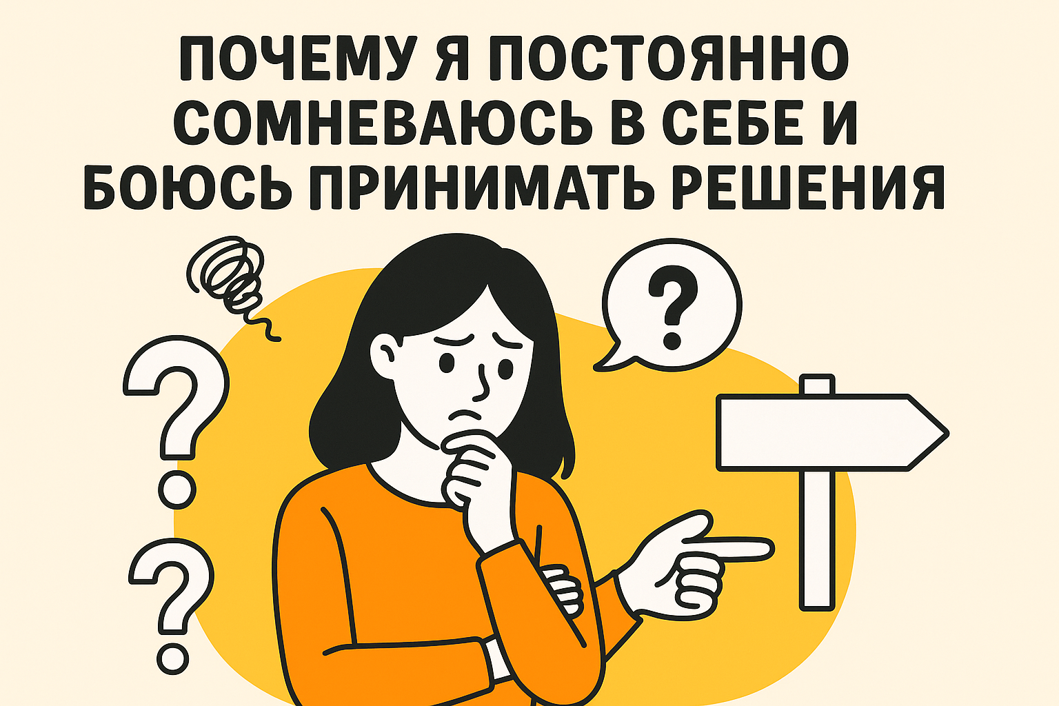 - Установите внутренние ориентиры. Четкое понимание своих целей и ценностей уменьшает сомнения.