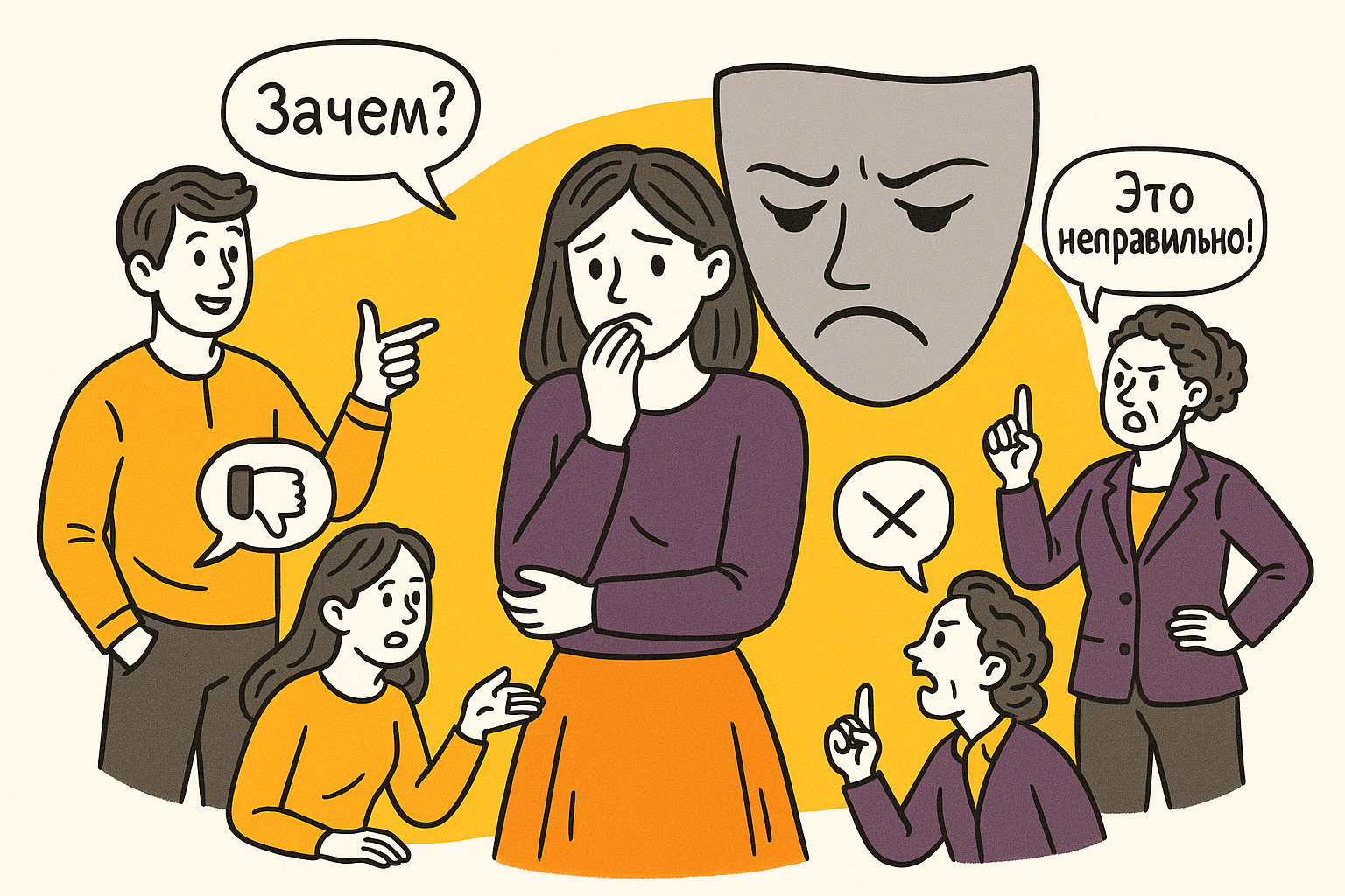 Ольга, 40 лет, чувствует постоянное давление: коллеги, друзья, родственники — их мнения влияют на каждое её решение. Она избегает конфликтов, не высказывает своего мнения и подстраивается под других. Внутри растет тревога, раздражение и ощущение утраты себя.